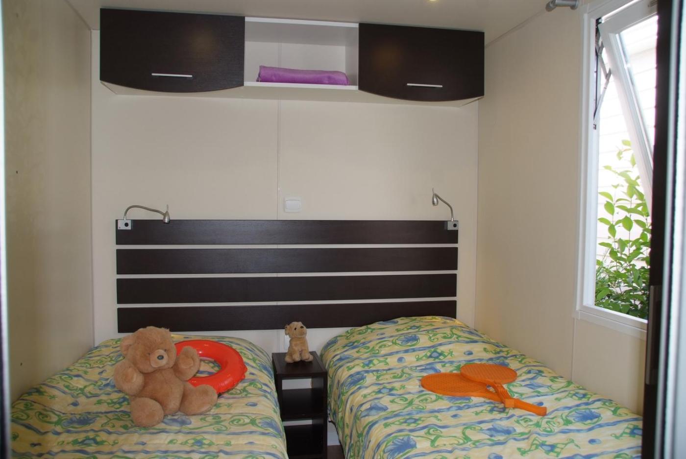 Two-Bedroom Mobile Home (4 persons). This mobile home features: - 2 bedrooms - An equipped kitchen and a dining area - A private bathroom - A furnished terrace. ;