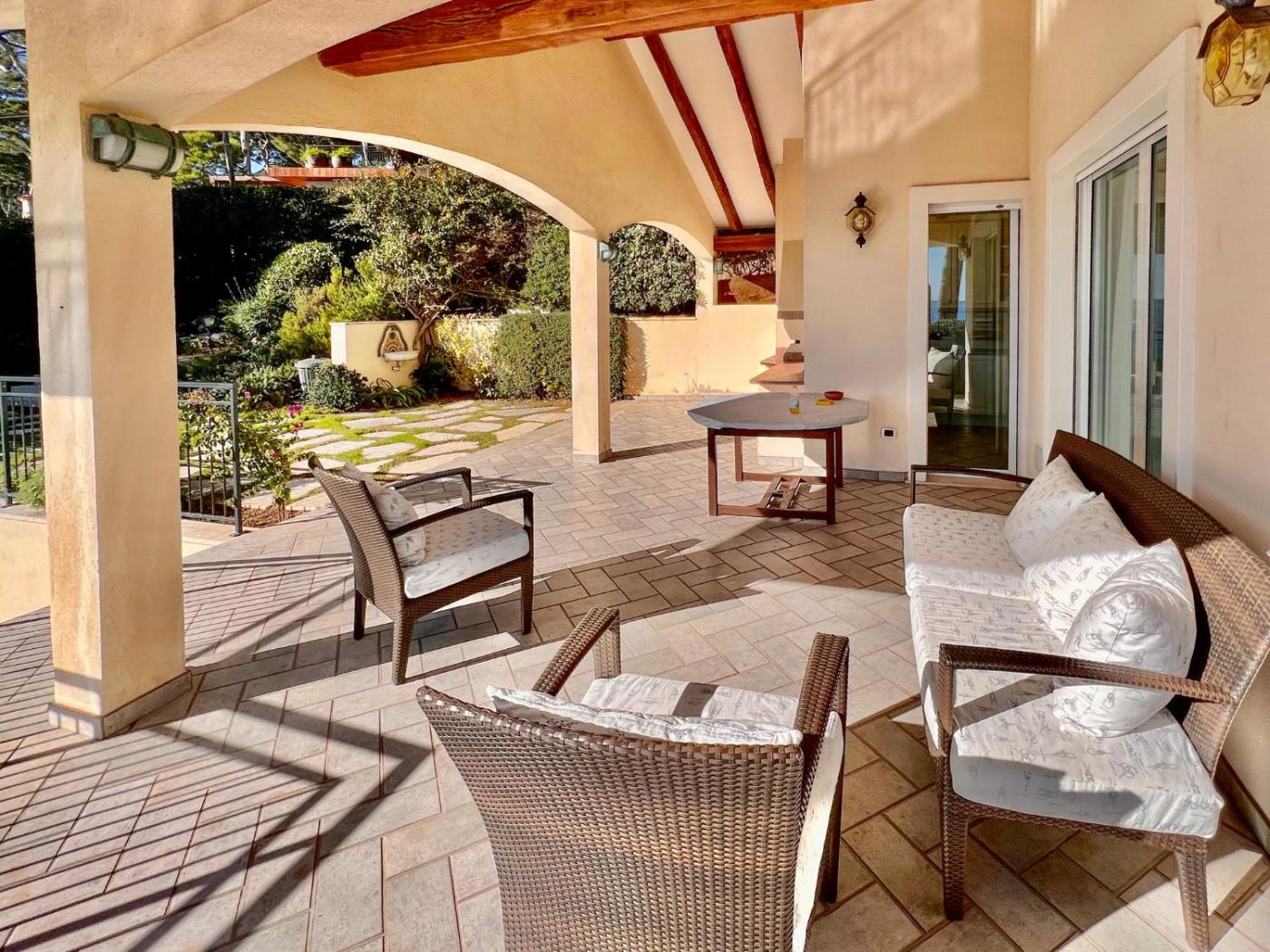 The spacious villa with a terrace and sea views features 5 bedrooms, a living room, a TV, an equipped kitchen with a dishwasher and a microwave, and 4 bathrooms with a bath. The unit at the property features a shower and a dressing room. For added privacy, the accommodation features a private entrance.