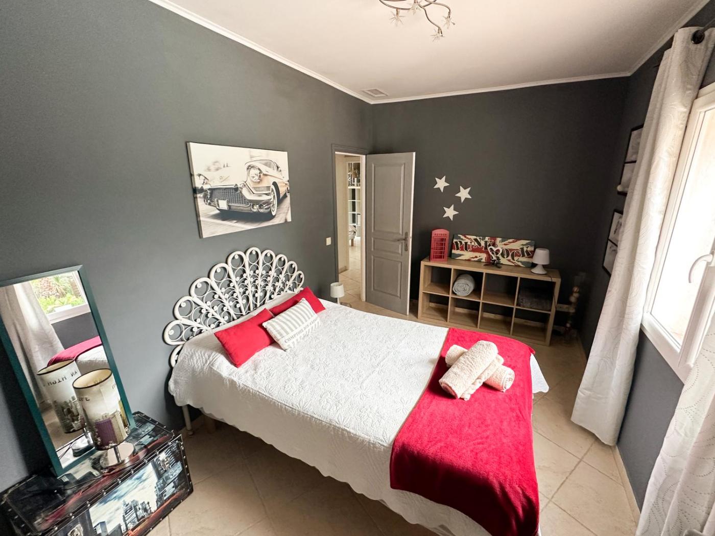 The villa with a terrace and pool views has 3 bedrooms, a living room, a flat-screen TV, an equipped kitchen with a dishwasher and an oven, and 2 bathrooms with a walk-in shower. The air-conditioned unit at the property features a bidet and a dressing room. For added privacy, the accommodation has a private entrance and is protected by full-day security.