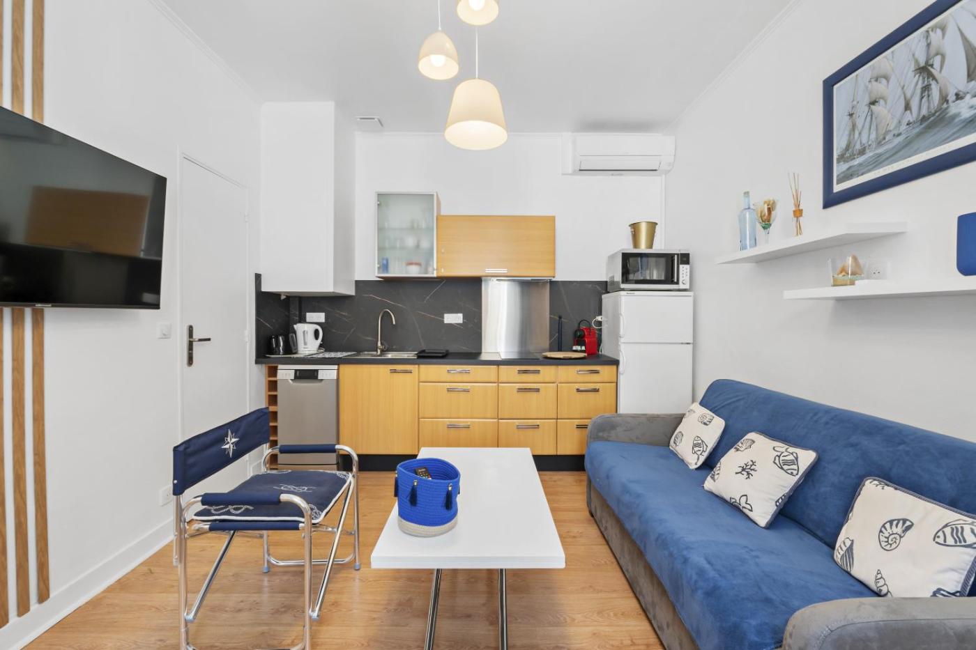 One-Bedroom Apartment. This apartment is comprised of 1 living room, 1 separate bedroom and 1 bathroom with a shower and free toiletries. The well-fitted kitchen features a stovetop, a refrigerator, a dishwasher and kitchenware. The air-conditioned apartment offers a flat-screen TV with cable channels, a washing machine, soundproof walls and a tea and coffee maker. The unit offers 2 beds.