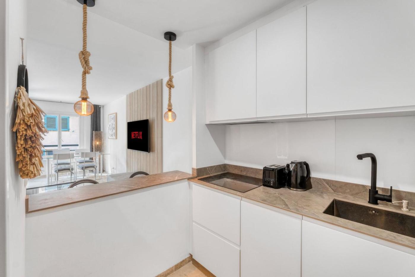 One-Bedroom Apartment. Featuring a private entrance, this air-conditioned apartment is comprised of a kitchen, 1 bedroom and 1 bathroom with a shower and a hairdryer. In the fully equipped kitchen, guests will find a stovetop, a refrigerator, a dishwasher and kitchenware. The apartment offers soundproof walls, a tea and coffee maker, a dining area, a wardrobe, as well as a flat-screen TV with cable channels. The unit offers 1 bed.
