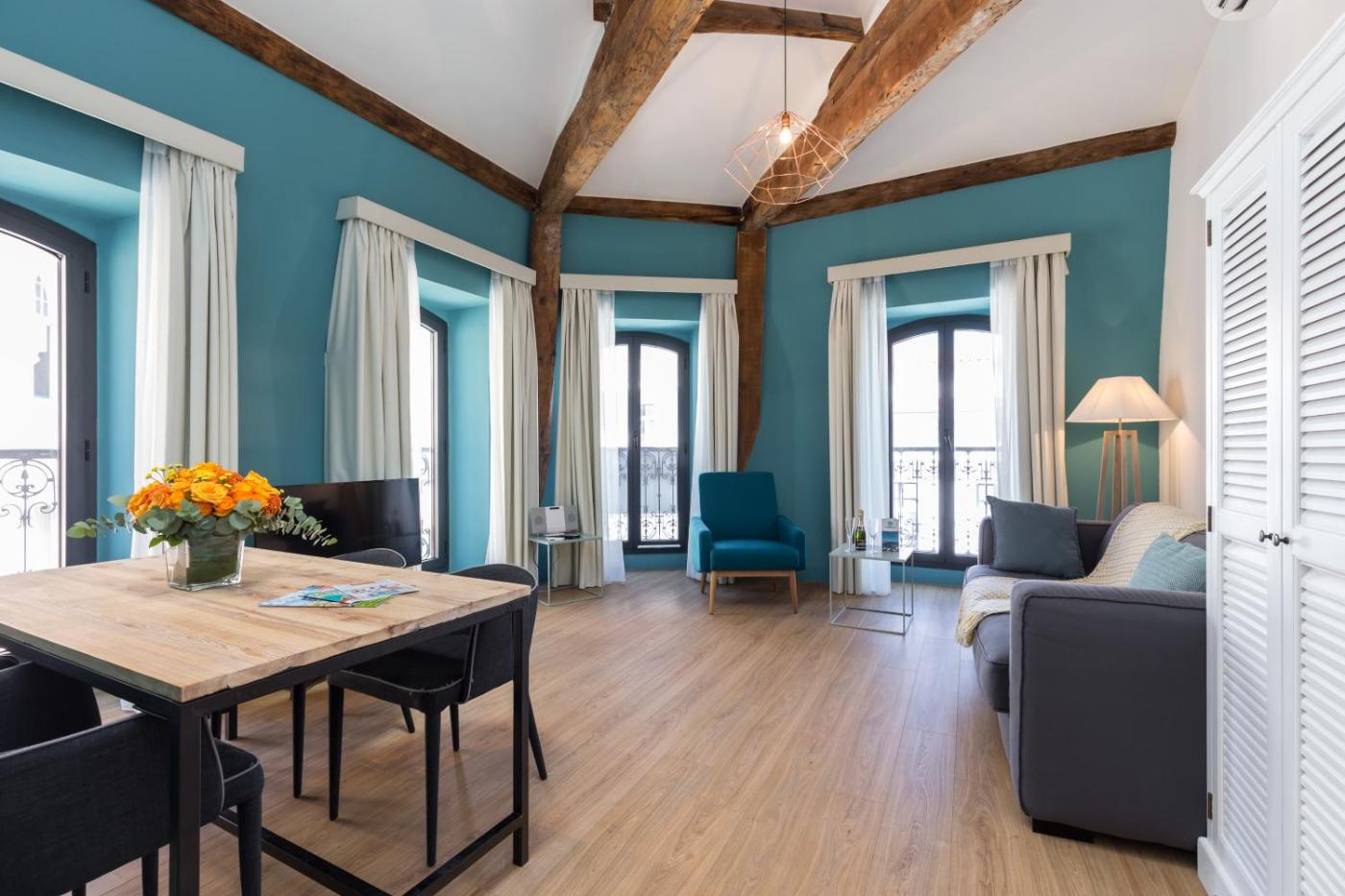 Duplex Apartment. This spacious apartment comprises 1 living room, 3 separate bedrooms and 2 bathrooms with a bath or a shower and free toiletries. Meals can be prepared in the kitchen, which comes with a stovetop, a refrigerator, a dishwasher and kitchenware. The air-conditioned apartment provides a flat-screen TV, a washing machine, soundproof walls, a coffee machine as well as city views. The unit offers 4 beds.