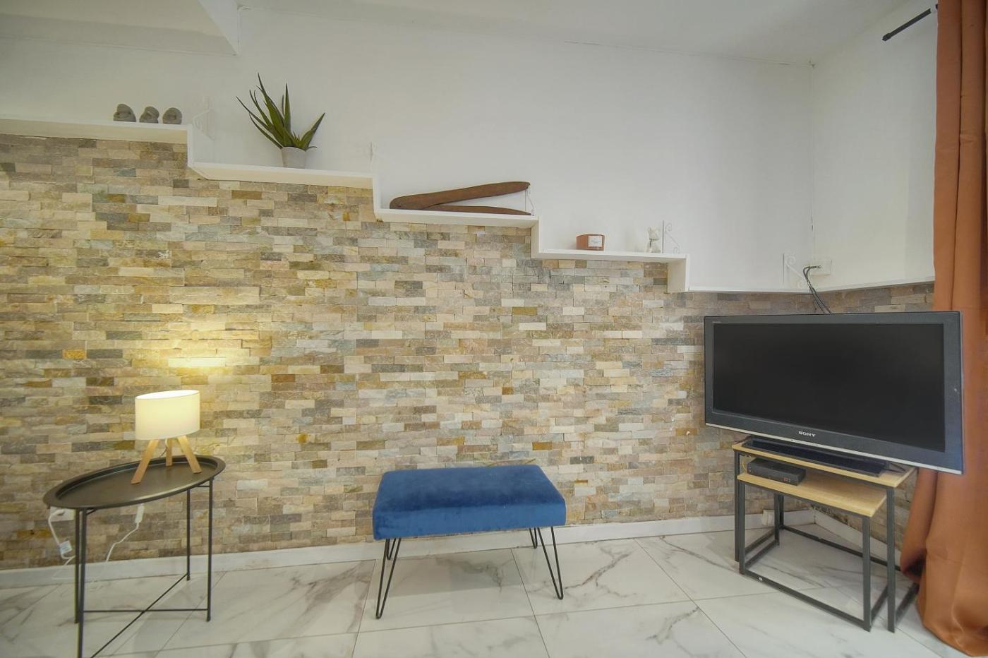 One-Bedroom Apartment. This air-conditioned apartment features 1 living room, 1 separate bedroom and 1 bathroom with a shower. Meals can be prepared in the kitchen, which has a stovetop, a refrigerator, kitchenware and an oven. Boasting a terrace, this apartment also features a washing machine, a coffee machine and a flat-screen TV. The unit has 1 bed.