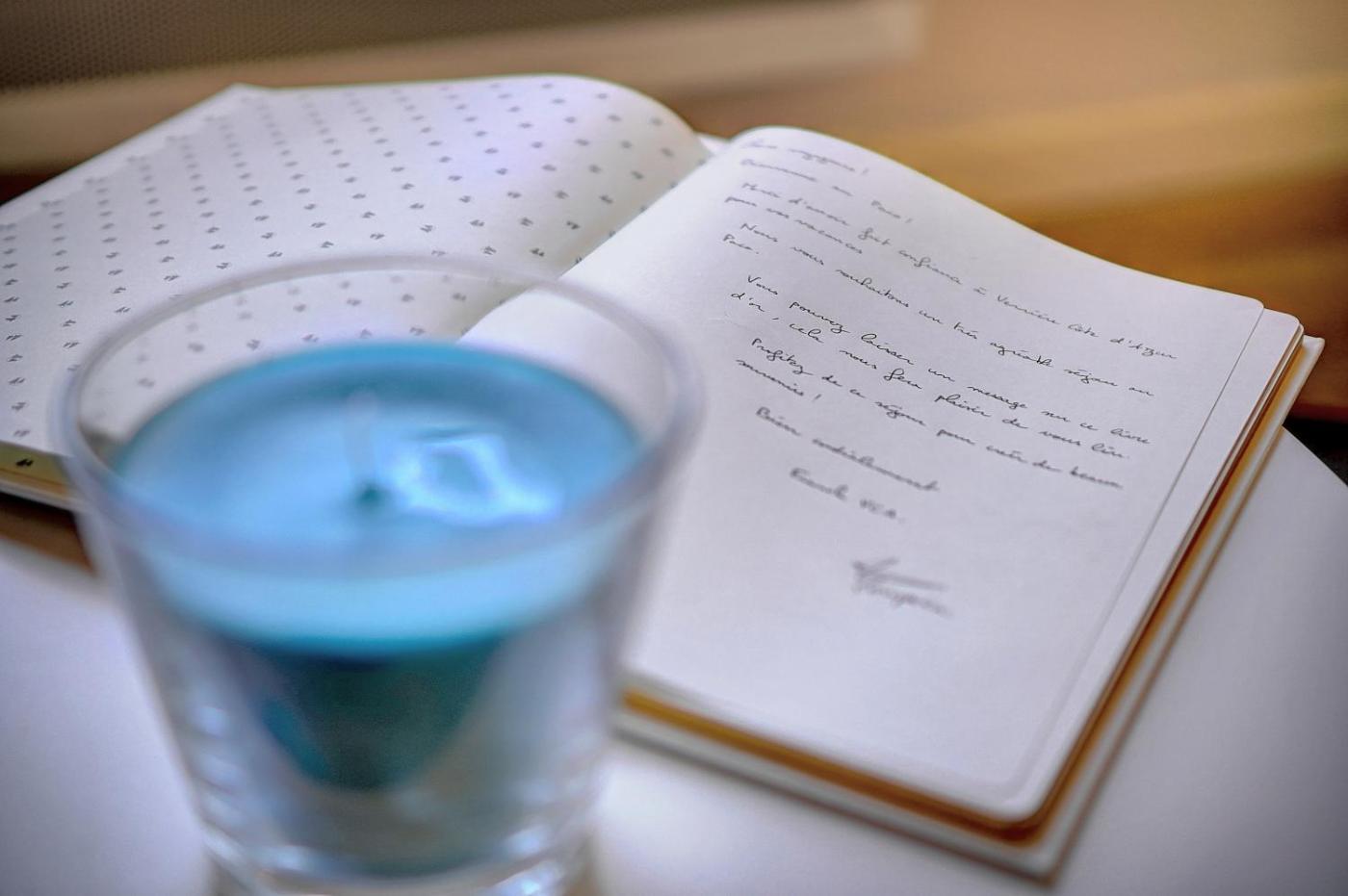 Shared stationery such as printed menus, magazines, pens, and paper removed