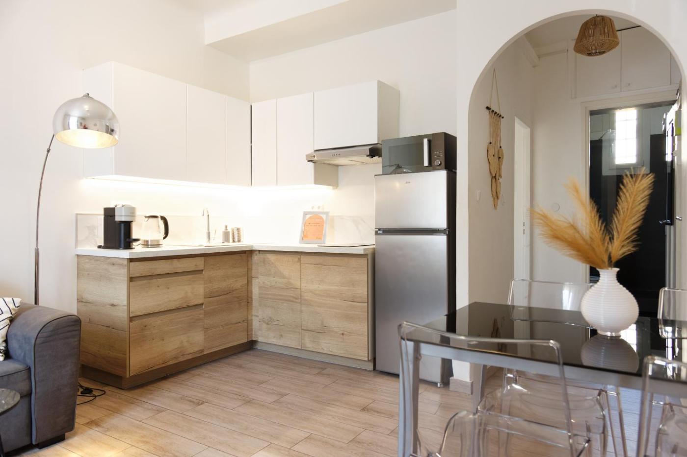 One-Bedroom Apartment. This air-conditioned apartment features 1 living room, 1 separate bedroom and 1 bathroom with a shower. In the well-equipped kitchen, guests will find a stovetop, a refrigerator, kitchenware and a microwave. The apartment has tiled floors, a seating area with a flat-screen TV, a tea and coffee maker, a dining area, as well as a wardrobe. The unit has 2 beds.