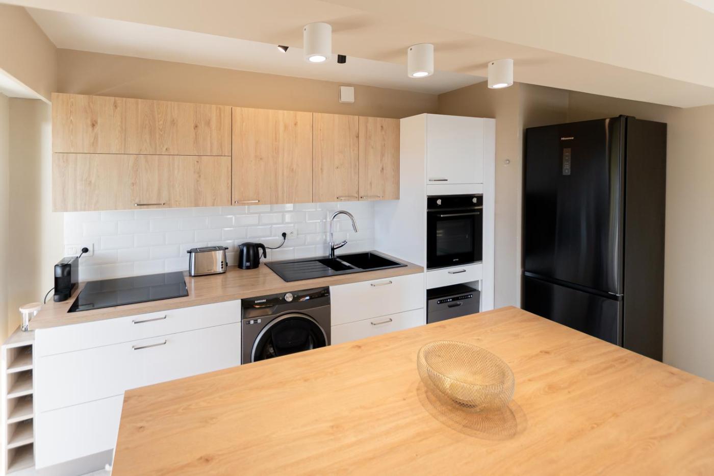 Two-Bedroom Apartment. This apartment features a pool with a view. This apartment comprises 1 living room, 2 separate bedrooms and 1 bathroom with a shower and free toiletries. Guests can make meals in the kitchen that comes with a stovetop, a refrigerator, a dishwasher and kitchenware. The air-conditioned apartment provides a flat-screen TV with cable channels, a washing machine, soundproof walls, a tea and coffee maker as well as sea views. The unit offers 2 beds.