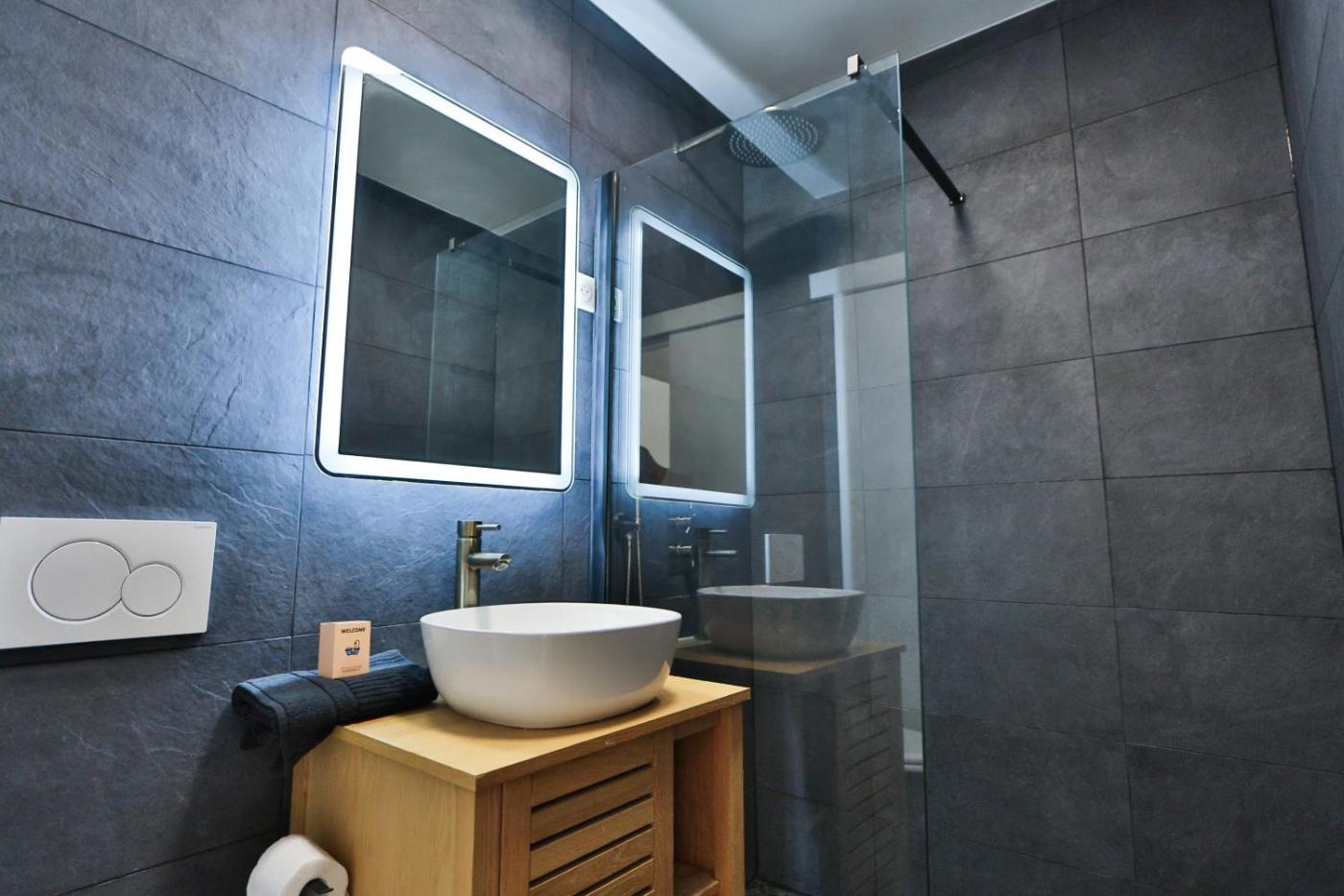 One-Bedroom Apartment. This apartment features 1 living room, 1 separate bedroom and 1 bathroom with a walk-in shower and free toiletries. In the well-equipped kitchen, guests will find a stovetop, a refrigerator, a dishwasher and kitchenware. This apartment is air-conditioned and has a seating area with a flat-screen TV, a washing machine, a tea and coffee maker, a dining area, as well as a wardrobe. The unit has 2 beds.