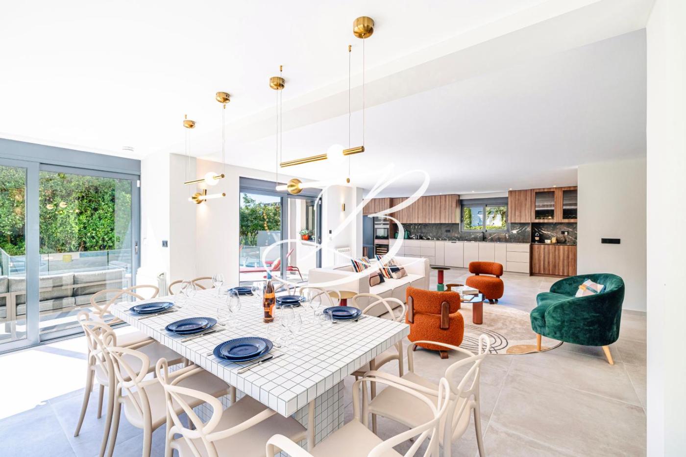 Villa. This villa features a pool with a view. Featuring a private entrance, this spacious villa also is comprised of 5 bedrooms, a seating area and 5 bathrooms with a walk-in shower and a hairdryer. The fully equipped kitchen features a stovetop, a refrigerator, a dishwasher and kitchenware. The air-conditioned villa offers a flat-screen TV, a washing machine, a tea and coffee maker, a dining area as well as garden views. The unit offers 6 beds.