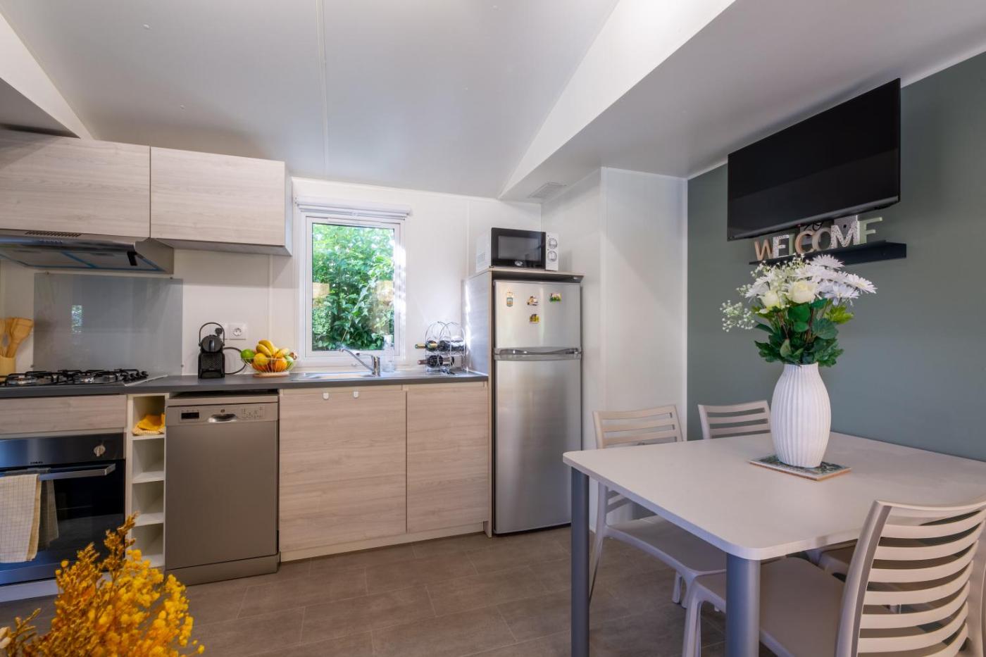 Mobile Home. This air-conditioned mobile home is comprised of 1 living room, 2 separate bedrooms and 2 bathrooms with a shower. The mobile home offers a flat-screen TV, a tea and coffee maker, a seating area, a dining area as well as garden views. The unit offers 4 beds.