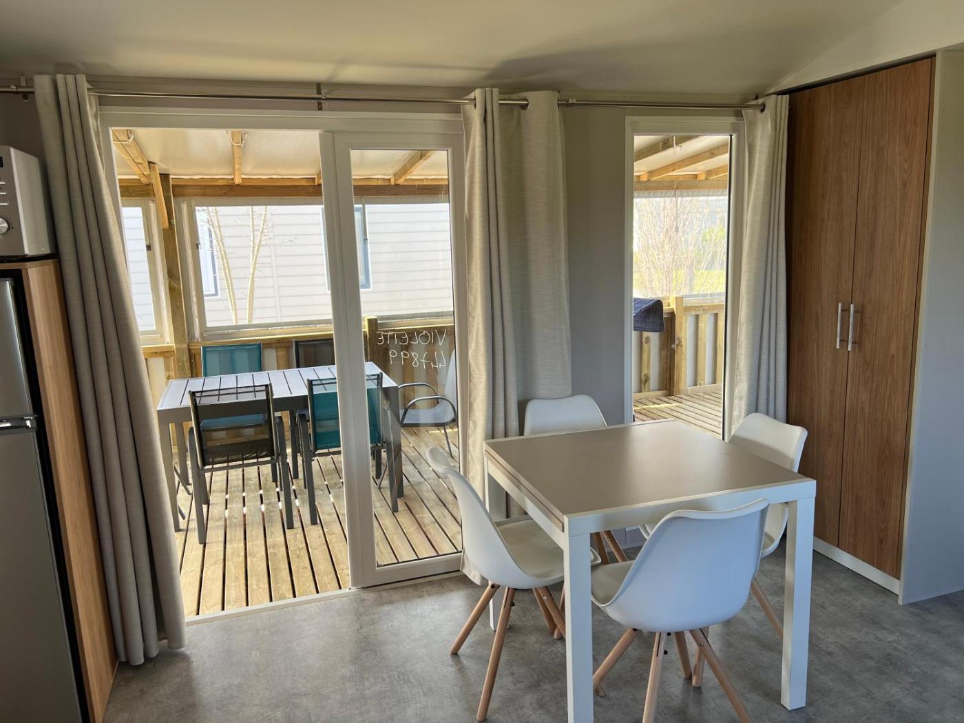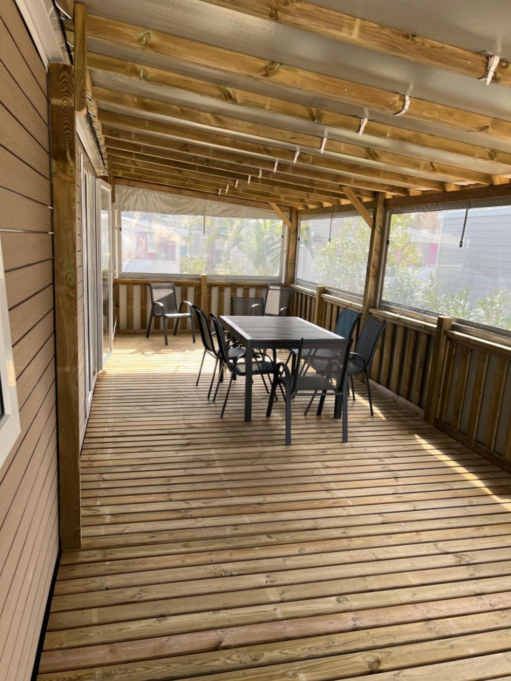 Mobil-home cosy 6 p climatisé à Hyères à 200 m de la mer dans camping 4 étoiles calme et familial