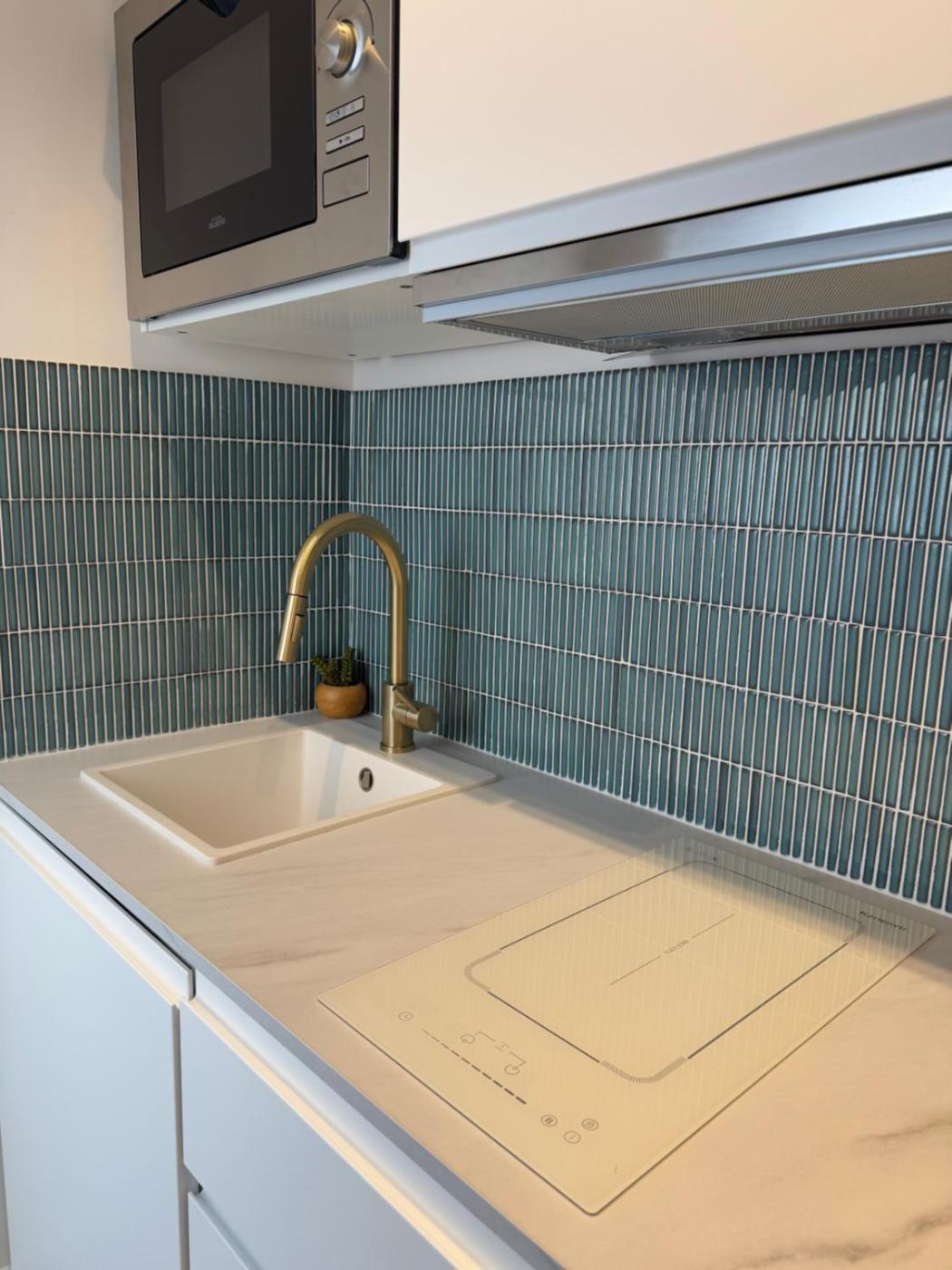 One-Bedroom Apartment. Guests can make meals in the kitchen that features a stovetop, a refrigerator, kitchenware and an oven. The apartment features air conditioning, a washing machine, a coffee machine, a dining area and a flat-screen TV. The unit has 1 bed.