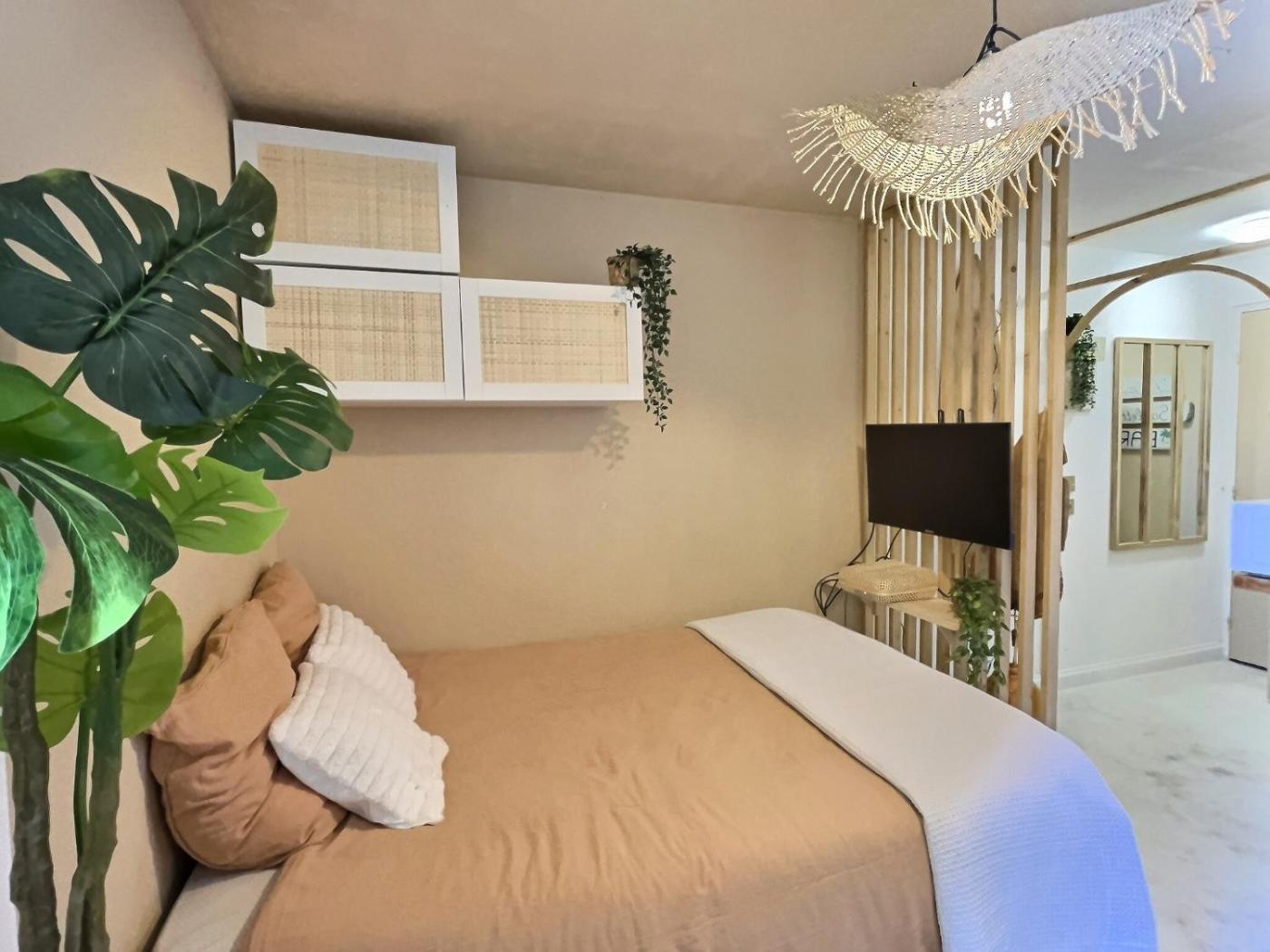 Studio Apartment with One Double Bed. Boasting a private entrance, this air-conditioned apartment features 1 living room, 1 separate bedroom and 1 bathroom with a bath and a hairdryer. The well-fitted kitchen has a stovetop, a refrigerator, kitchenware and a microwave. This apartment features an electric kettle, heating and a flat-screen TV. The unit has 1 bed.