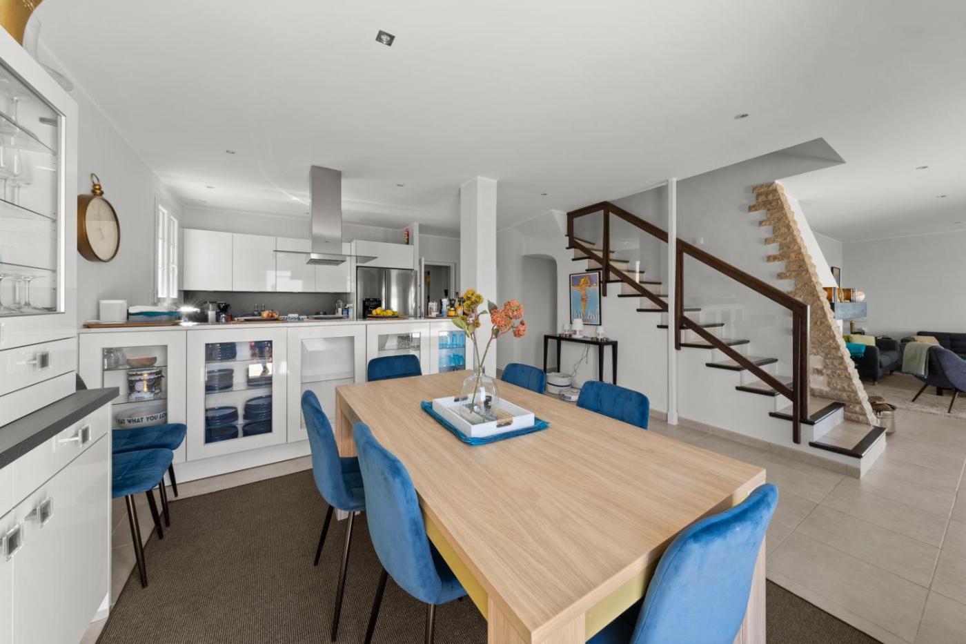 Villa. The pool with a view is a top feature of this villa. Boasting a private entrance, this air-conditioned villa comes with 1 living room, 5 separate bedrooms and 3 bathrooms with a shower and a hairdryer. Guests can make meals in the kitchen that features a stovetop, a refrigerator, a dishwasher and kitchenware. The spacious villa features a washing machine, soundproof walls, a tea and coffee maker as well as a terrace with sea views. The unit has 5 beds.
