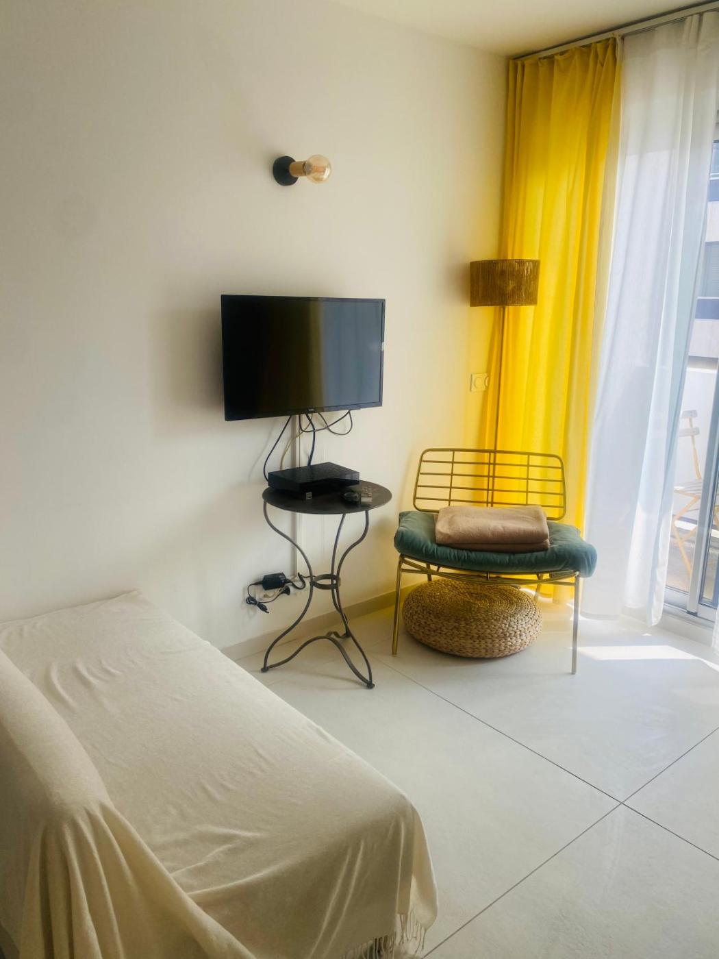 Apartment with Balcony. Please note that the bedrooms are closed by a curtain and have no door.