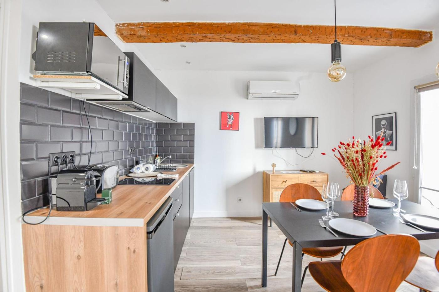 Apartment. The air-conditioned apartment features 1 bedroom and 1 bathroom with a shower and a hairdryer. Meals can be prepared in the well-fitted kitchen, which is equipped with a stovetop, a refrigerator, kitchenware and a microwave. The apartment provides a TV, a washing machine, a coffee machine, a dining area as well as city views. The unit offers 1 bed.
