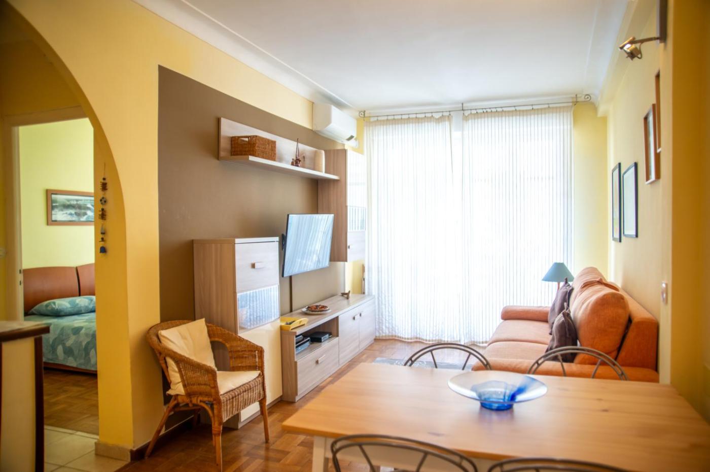 One-Bedroom Apartment. This air-conditioned apartment consists of 1 living room, 1 separate bedroom and 1 bathroom with a shower. In the fully equipped kitchen, guests will find a stovetop, a refrigerator, a dishwasher and kitchenware. Featuring a terrace with city views, this apartment also provides a washing machine and a flat-screen TV with streaming services. The unit offers 2 beds.