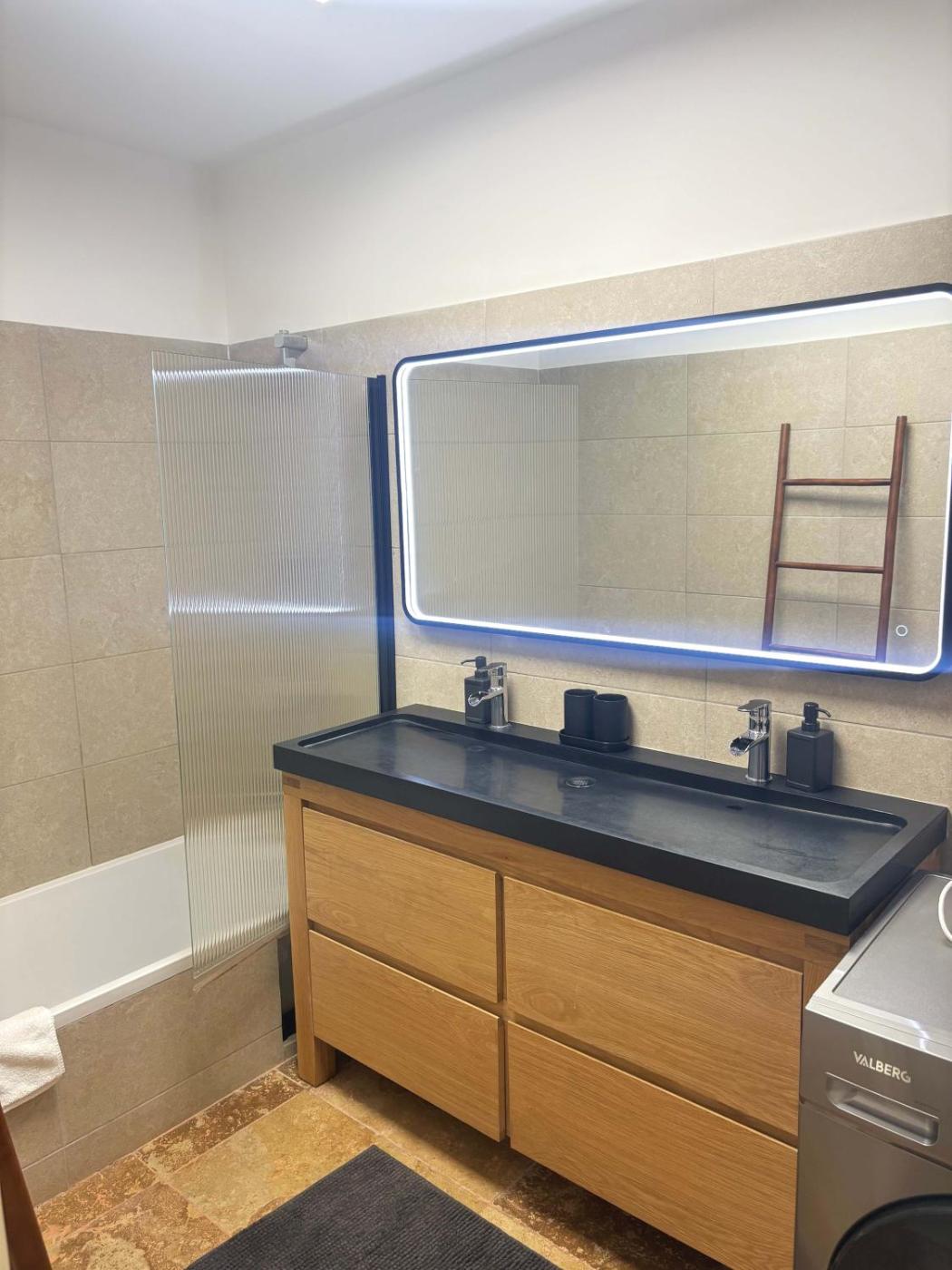 Apartment. This apartment comes with 1 living room, 2 separate bedrooms and 1 bathroom with a hairdryer. In the fully equipped kitchen, guests will find a stovetop, a refrigerator, a dishwasher and an oven. The apartment features a washing machine, a tea and coffee maker, tumble dryer, a TV with cable channels, as well as sea views. The unit has 3 beds.