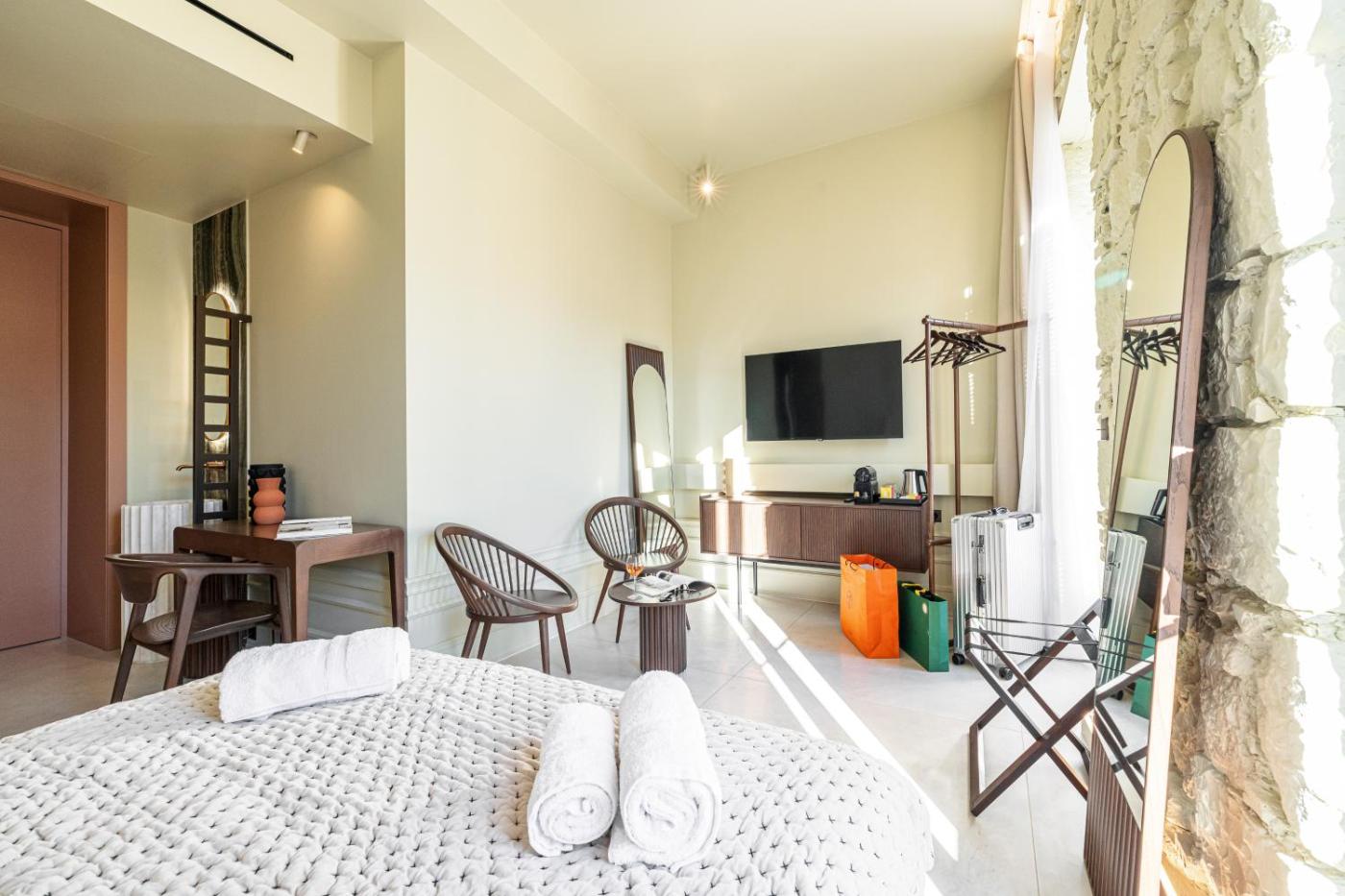 Superior Double Room. The double room provides air conditioning, a minibar, as well as a private bathroom featuring a walk-in shower and a hairdryer. The double room offers a flat-screen TV, a tea and coffee maker, a safe deposit box, heating as well as city views. The unit offers 1 bed. ;