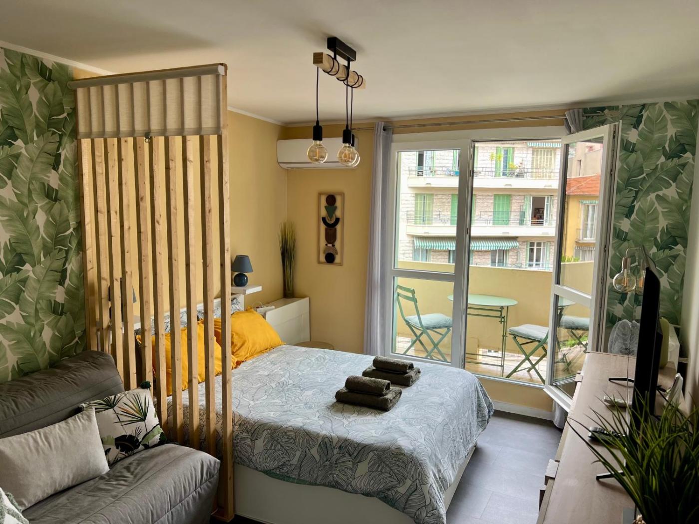 Located in Nice, 600 metres from Russian Orthodox Cathedral and 1.1 km from Nice-Ville Train Station, Palm Leaf Studio Nice offers a terrace and air conditioning. The property is around 1.3 km from Avenue Jean Medecin, 2.8 km from MAMAC and 4.1 km from Cimiez Monastery. Free WiFi is available throughout the property and Forum Beach is less than 1 km away.