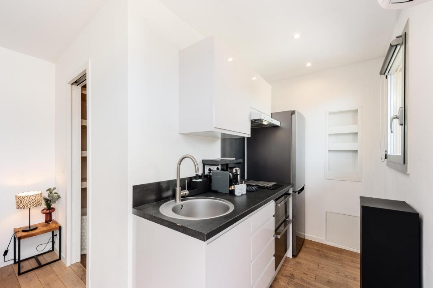One-Bedroom Apartment. Featuring a private entrance, this air-conditioned apartment is comprised of a kitchen, 1 bedroom and 1 bathroom with a walk-in shower and a hairdryer. Guests can make meals in the kitchen that is fitted with a stovetop, a refrigerator, a dishwasher and kitchenware. The apartment offers a flat-screen TV, a washing machine, soundproof walls, a coffee machine as well as sea views. The unit offers 1 bed.