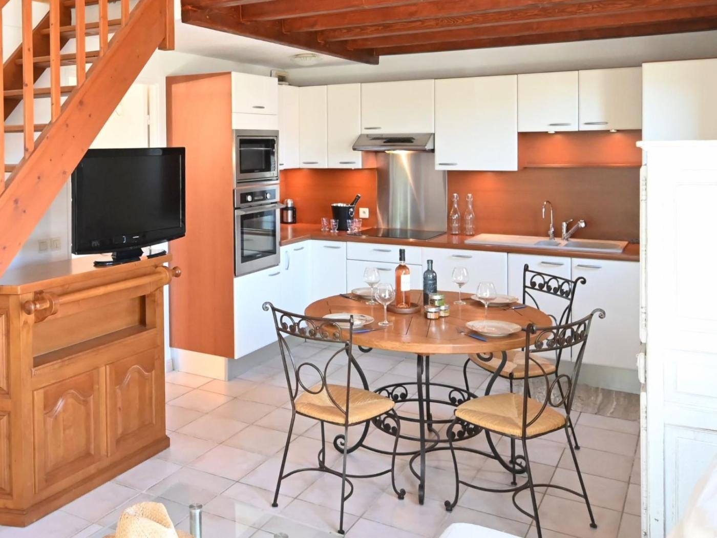 The air-conditioned holiday home is composed of 2 separate bedrooms, a fully equipped kitchen with a dishwasher and an oven, and 1 bathroom. A TV is available.