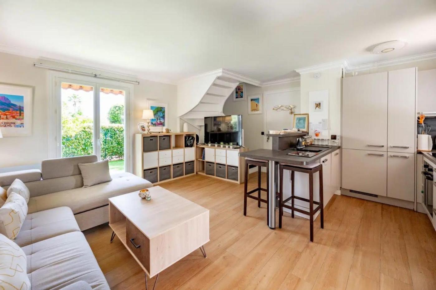 Boasting air-conditioned accommodation with a private pool, garden view and a balcony, Maison Green Village is situated in Roquebrune-sur-Argens. This beachfront property offers access to a terrace and free private parking. Outdoor seating is also available at the holiday home.