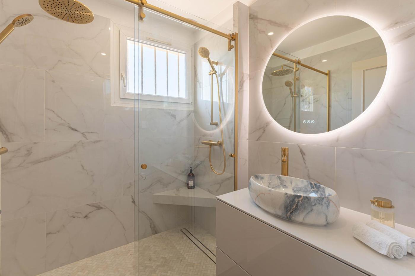 The spacious villa with a terrace and garden views has 5 bedrooms, a living room, a flat-screen TV, an equipped kitchen with a dishwasher and an oven, and 3 bathrooms with a bidet. The air-conditioned unit at the property features a bath and a dressing room. For added privacy, the accommodation has a private entrance and is protected by full-day security.