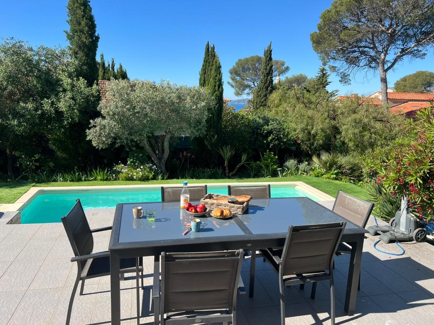 The villa conveniently has a year-round outdoor pool.