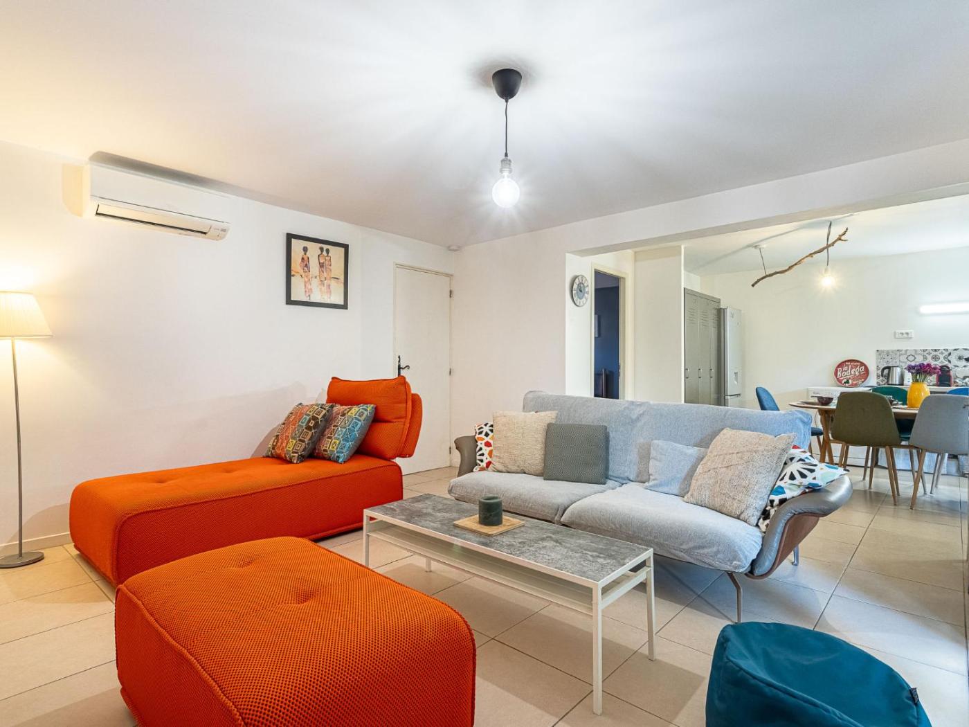 Apartment. The private pool is a top feature of this apartment. Boasting 2 bedrooms, this spacious apartment has 1 bathroom with a shower, a seating area and terraceyou can relax. Guests will find a stovetop, a refrigerator, a dishwasher and kitchenware in the well-fitted kitchen. The apartment also includes a barbecue. This apartment is air-conditioned and has a flat-screen TV, a washing machine, a coffee machine and heating. The unit offers 4 beds.