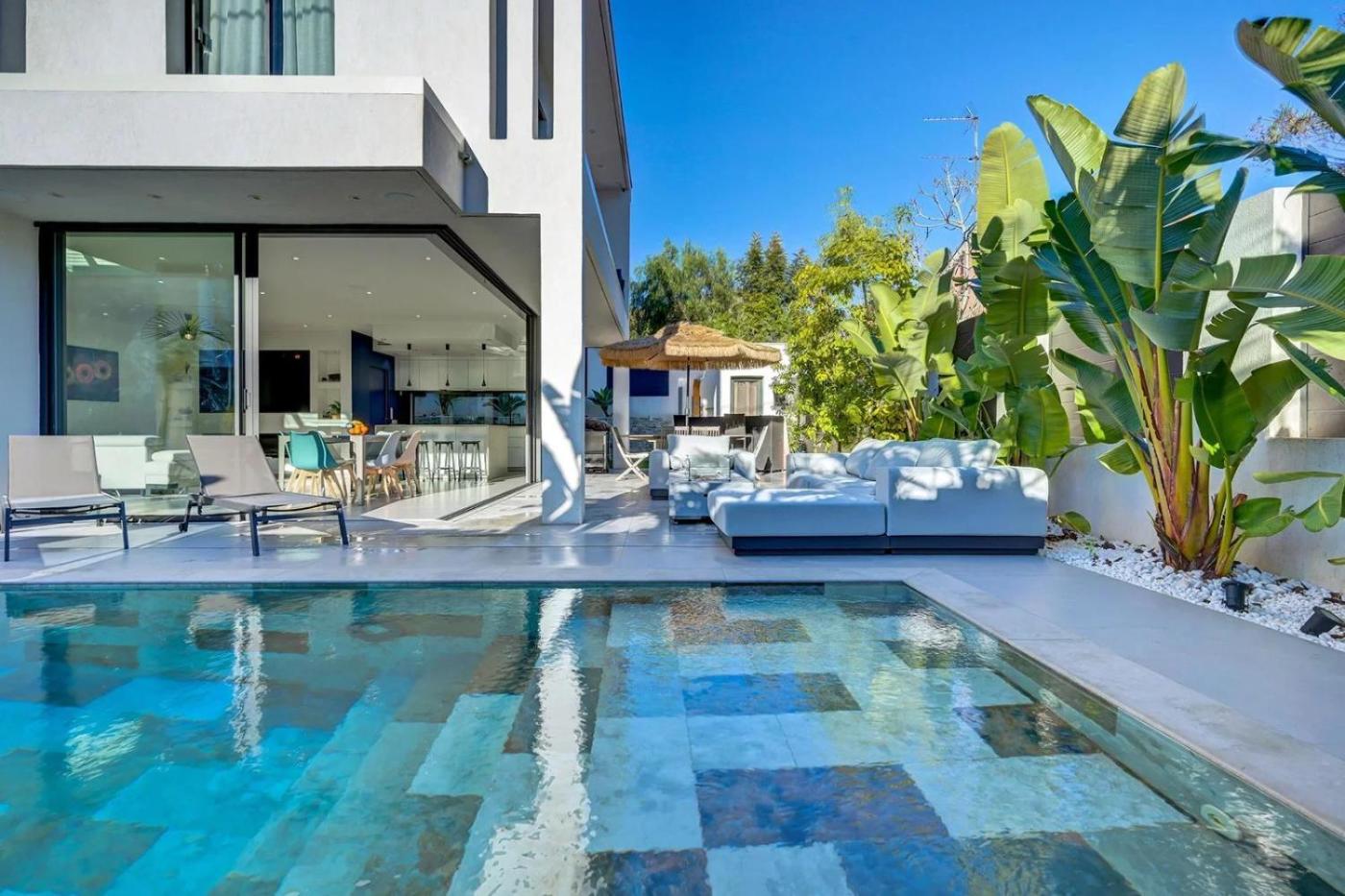 The spacious villa with a terrace and pool views features 3 bedrooms, a living room, a flat-screen TV, an equipped kitchen with a dishwasher and a microwave, and 2 bathrooms with a shower. Guests can enjoy a meal on an outdoor dining area while overlooking the garden views. For added privacy, the accommodation has a private entrance and soundproofing.