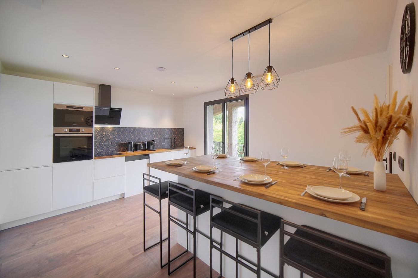 The spacious holiday home with a terrace and sea views features 3 bedrooms, a living room, a flat-screen TV, an equipped kitchen with a dishwasher and an oven, and 3 bathrooms with a shower. Towels and bed linen are featured in the holiday home. The property has an outdoor dining area.